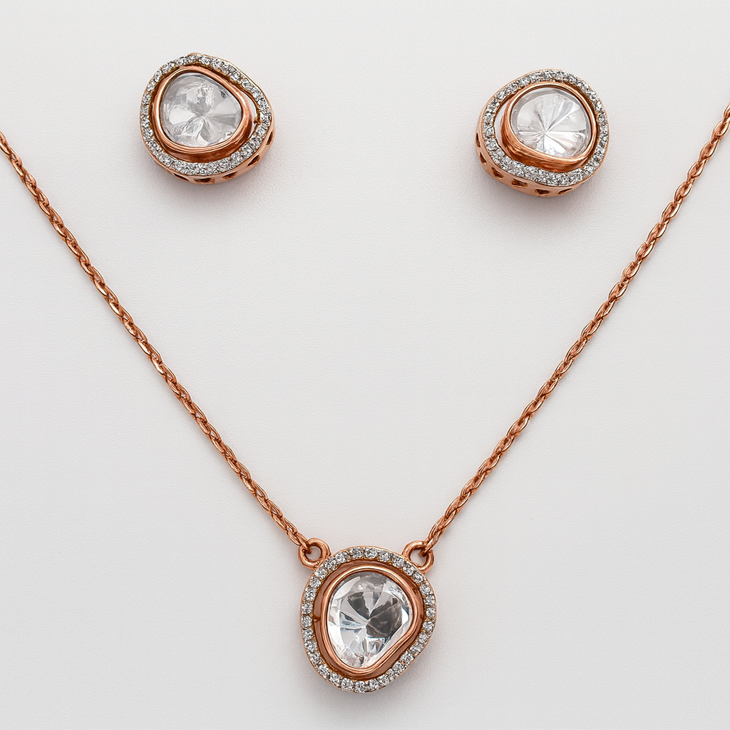 Rose Gold Mozo Necklace & Studs Set | 925 Silver
